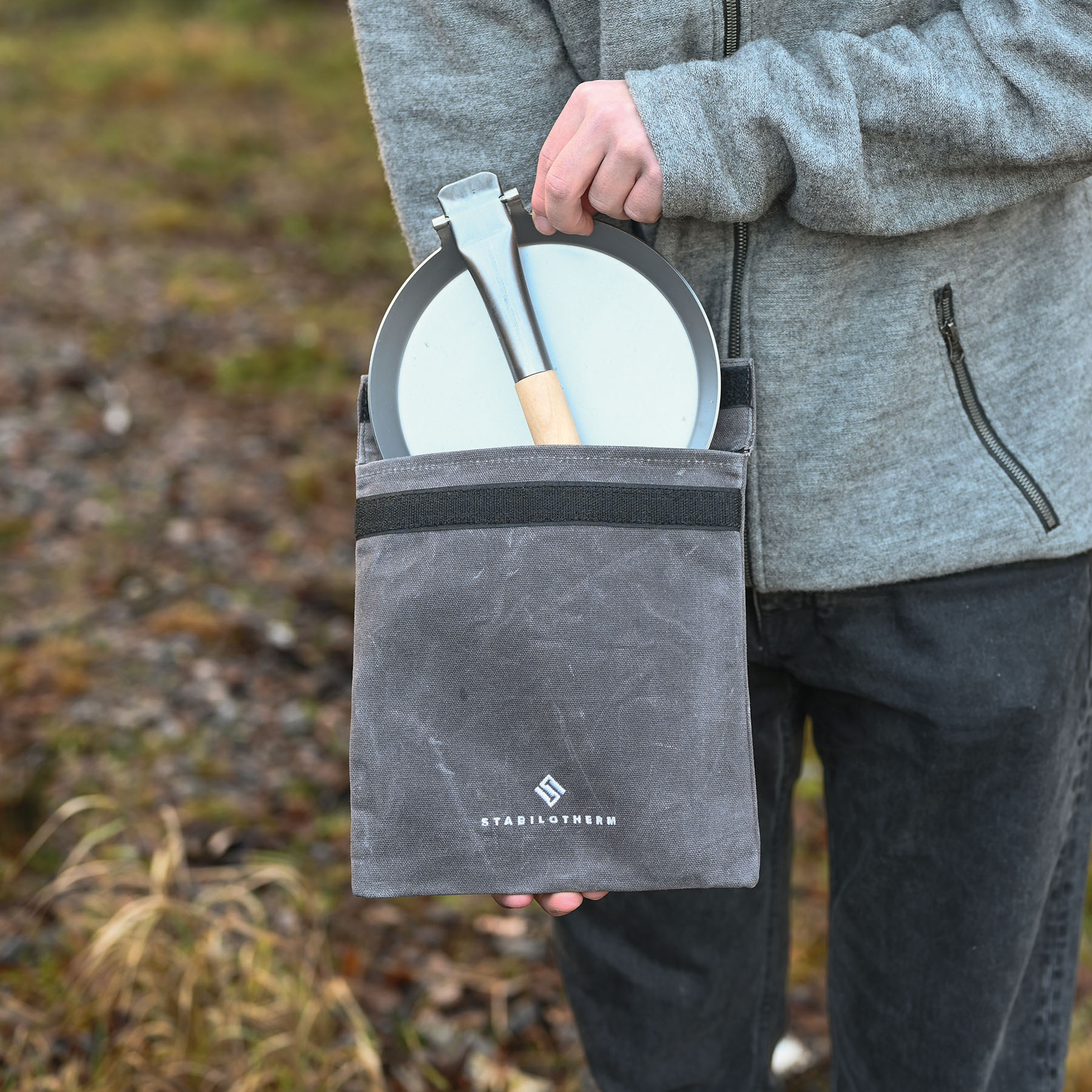 Praktisk och slitstark förvaringspåse i kraftig canvas, framtagen för att skydda och transportera din utrustning. Påsen passar perfekt till Stabilotherms jägarstekpannor med diameter 21 cm och gör det enkelt att hålla utrustningen samlad mellan äventyren.